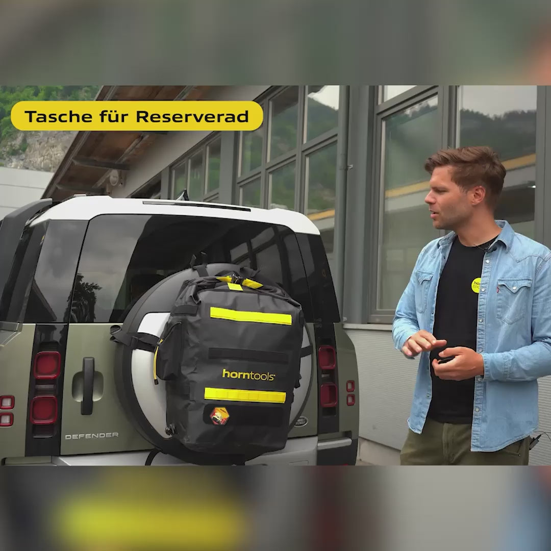 De horntools reservewieltas is de perfecte oplossing voor offroad-avonturen, kampeertrips of dagelijks gebruik. Of je hem nu aan het reservewiel of aan de laadklep bevestigt, dankzij de robuuste bevestigingsopties is hij flexibel inzetbaar.